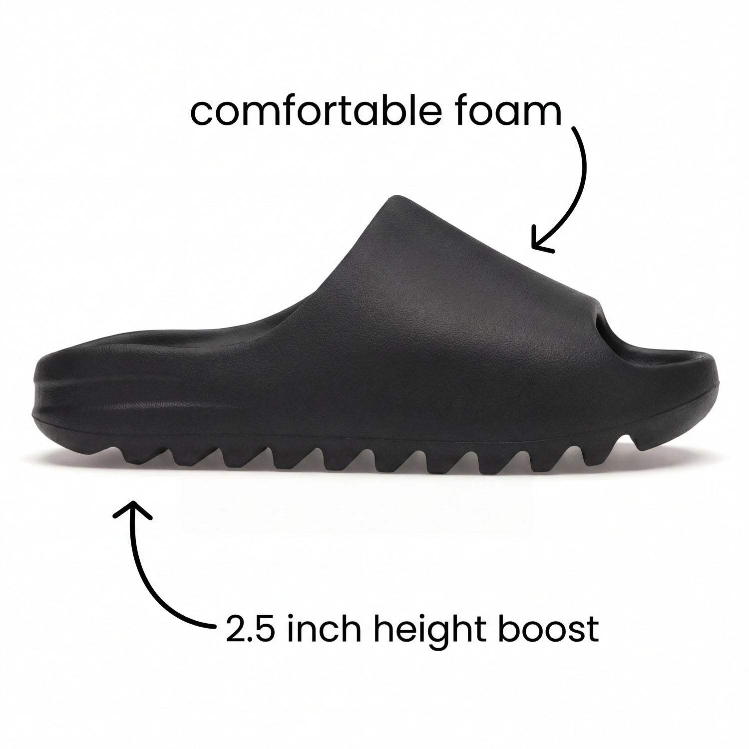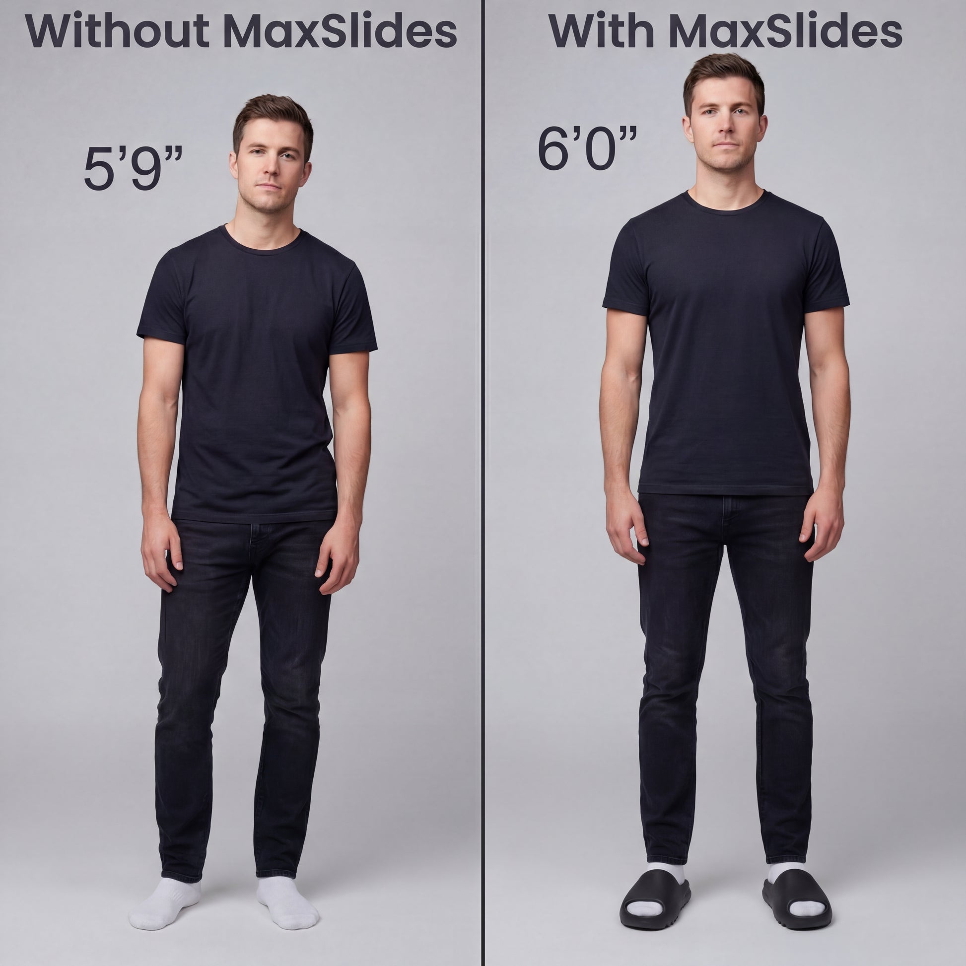 MaxSlides look and feel just like your everyday slides—with one key difference: they add 2.5 inches to your height. No bulky designs. No giveaways. Just a subtle height boost that fits right in, so no one notices… except you.